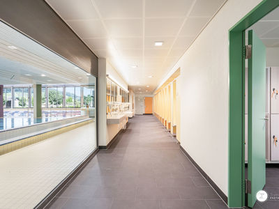 In Balgach wurde das bestehende Hallenbad so saniert, dass die haustechnischen Anlagen inkl. der gesamten Schwimmbadtechnik und Rutschbahn ganzheitlich erneuert wurden. Das Hallenbad wurde um ein Schwimmbecken mit fünf 25-Meter-Schwimmbahnen und einem Sprungbrett erweitert. Für das zusätzliche Besucheraufkommen entstand ein Anbau für die Garderoben. Der Bereich der bestehenden Garderoben gibt Platz für den Einbau eines Planschbeckens und eines Bistros. Neugestaltung der Umgebung rundete die Sanierung und Erweiterung des Hallenbades ab.